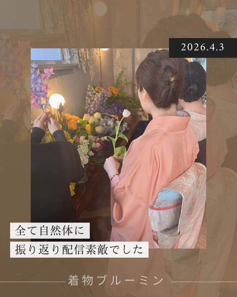 着物インフルエンサーの天野さとみさん、flowershop アンヴェール まりさん、写真家やすこさんの着物・お花・撮影のコラボレーションに参加してきました。